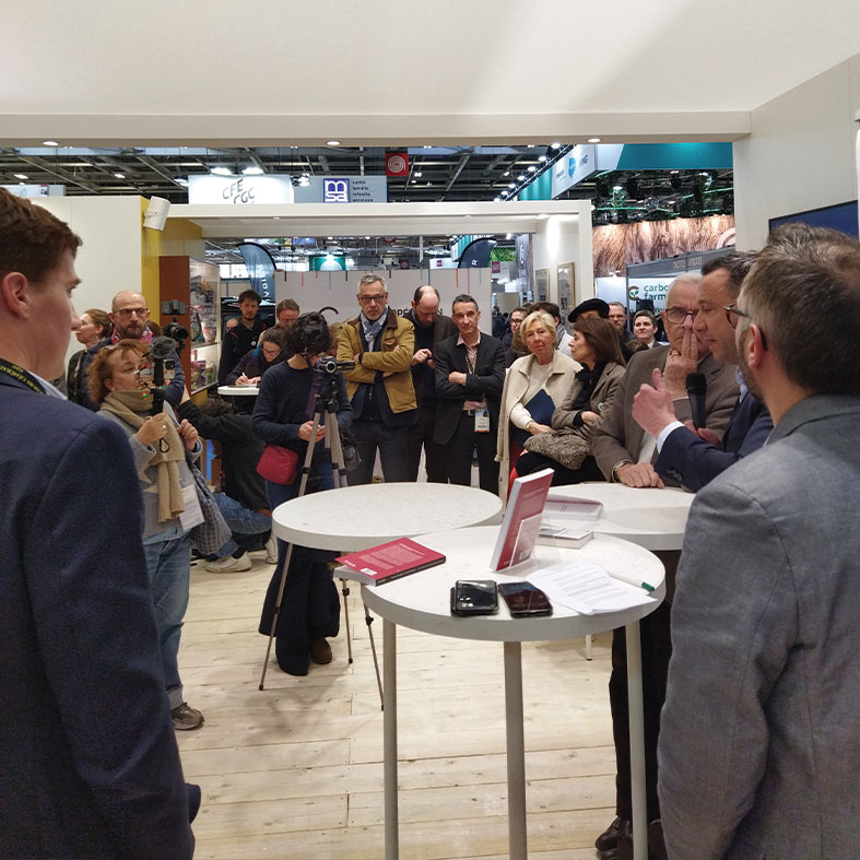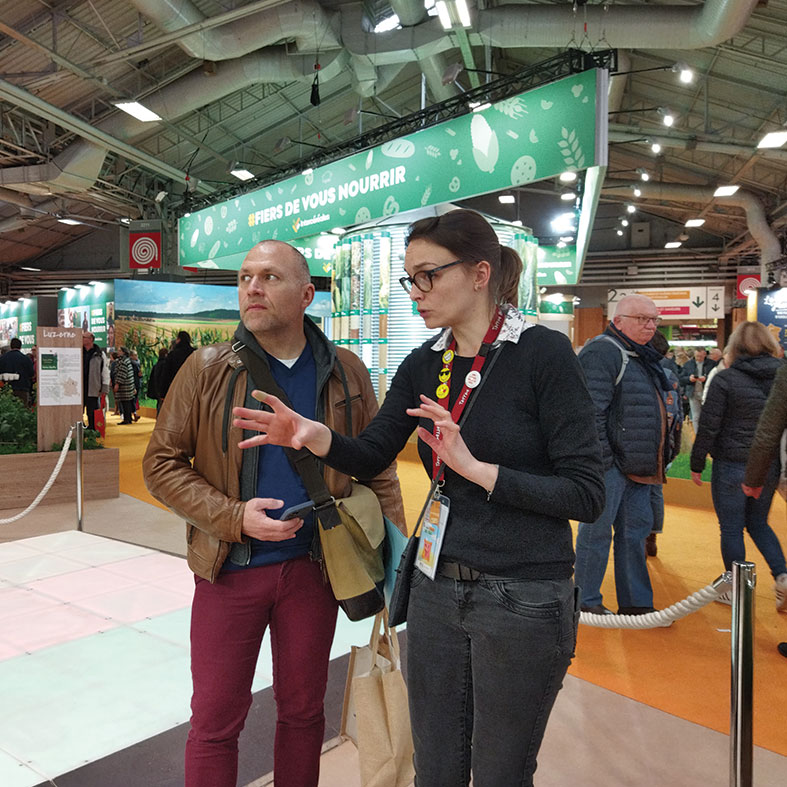 et visite des stands candidats1 – Visite du stand de la Commission Européenne2 – Viste du stand Sodiaal3 – Visite du stand de l’Inrae4 – Stand de C’est qui le patron ?5 – Stand de UGP Ban6 – Stand de Terres OleoPro |